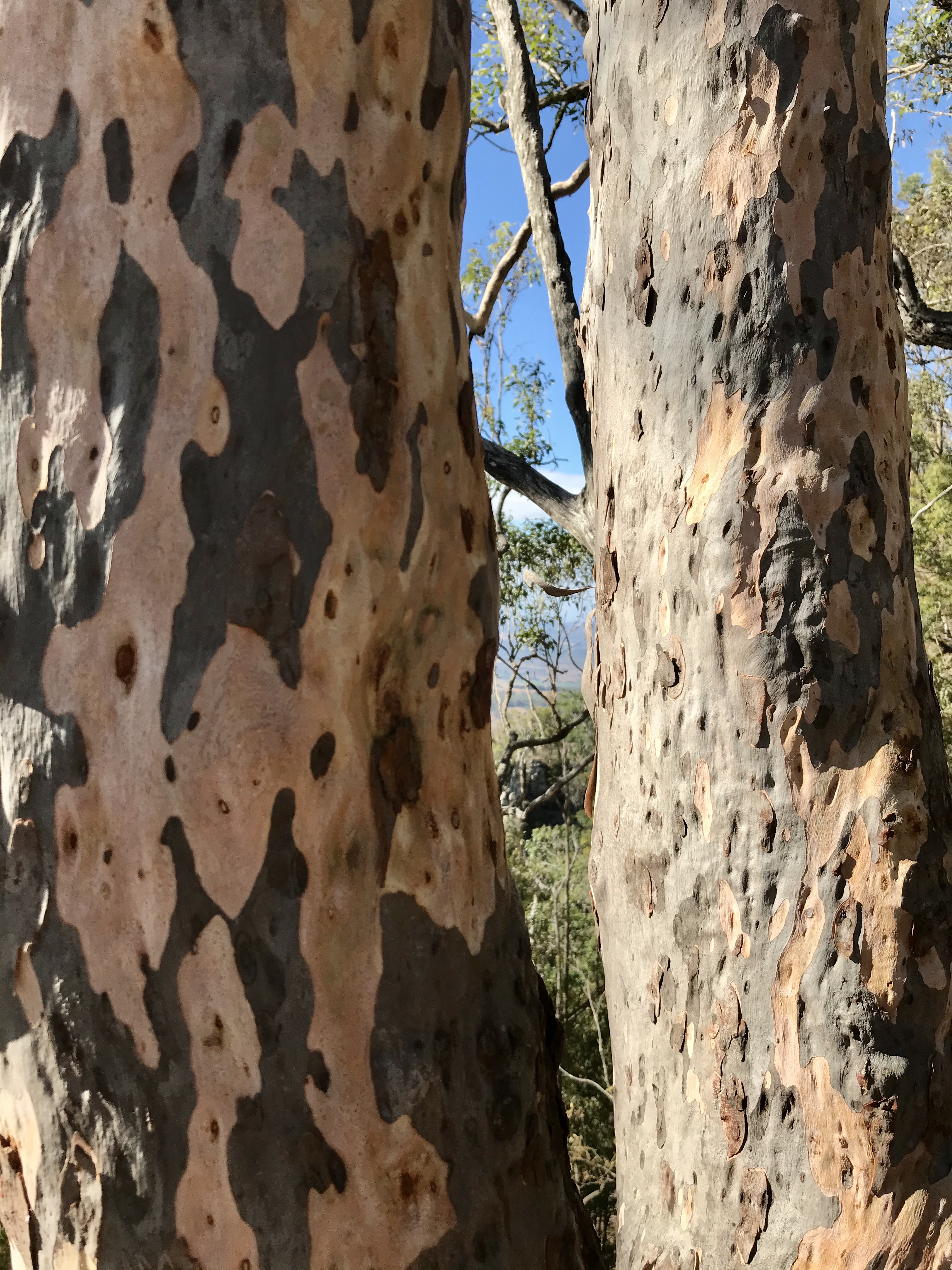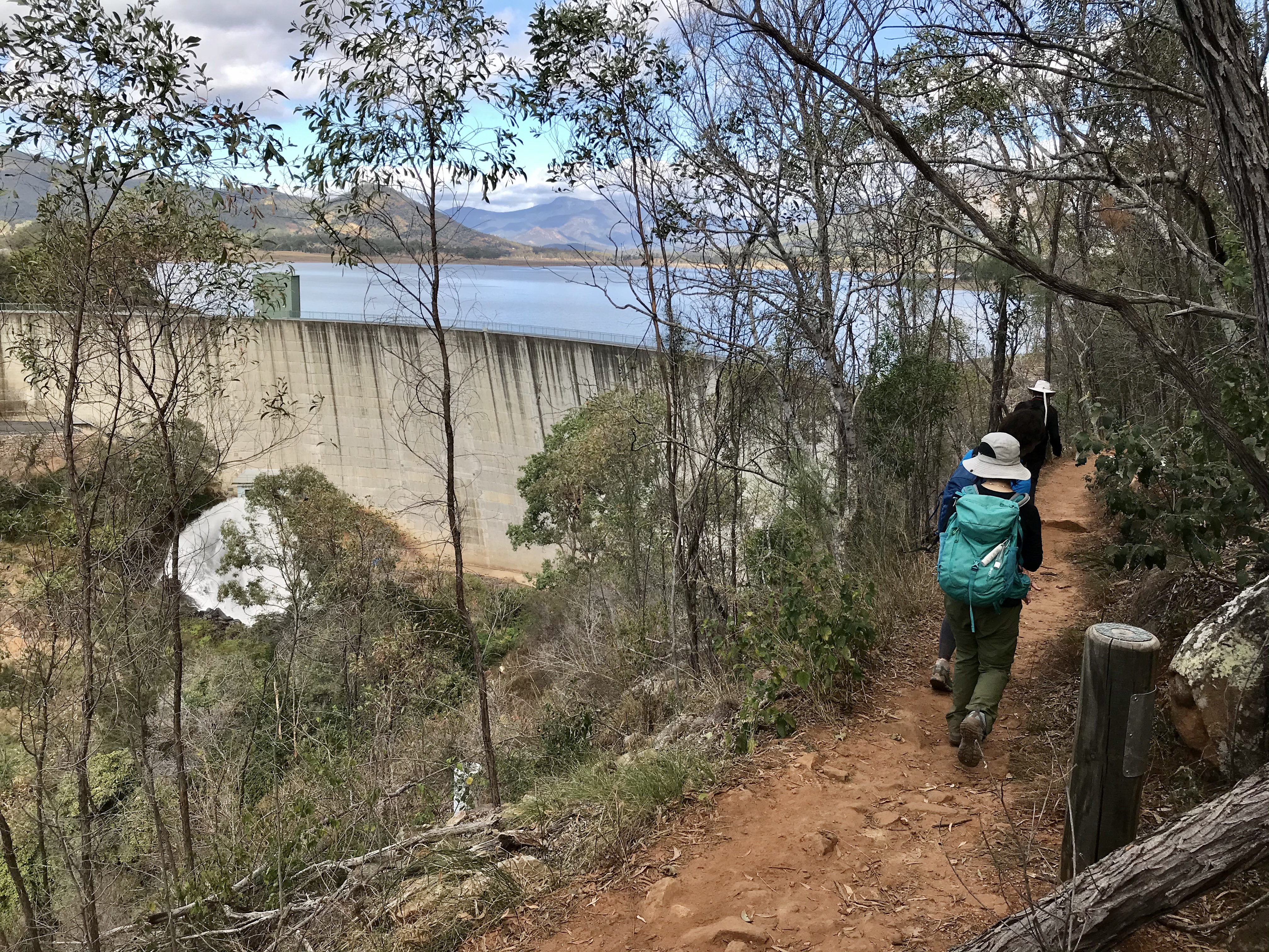 Today our first of two hikes was Mt Edwards, accessible by walking across the dam wall and up a short but steep dirt path. The views of the Main Range to the west and Flinders Peak and other pinnacles to the east were lovely under warm winter sun. Around us as for miles is dry eucalypt bushland.