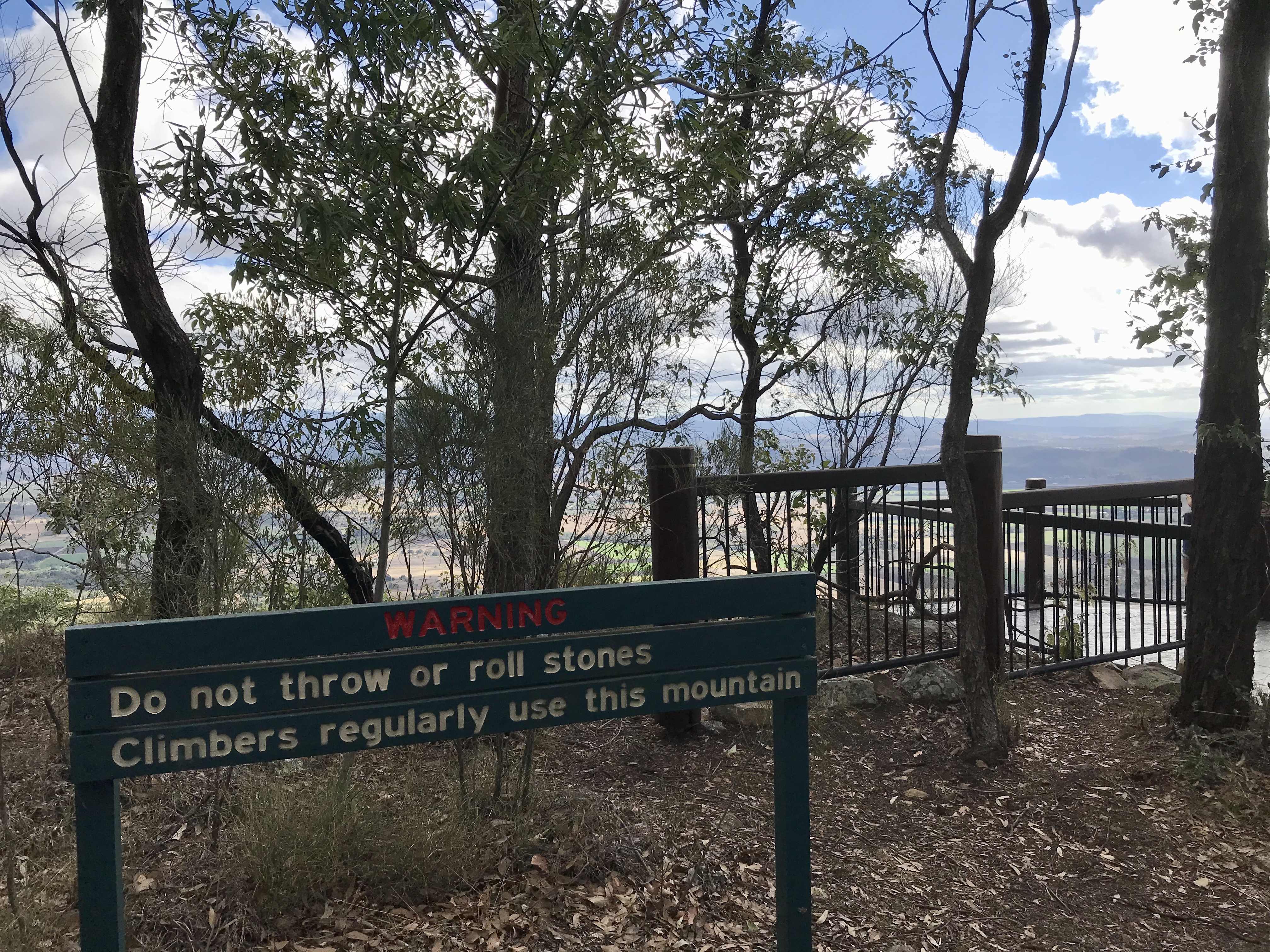Mount French has short flat tracks, nice views and cheap camping for the climbers who visit Frog Buttress, a shear escarpment at the northern end. This used to be a mecca for the local ‘trad’ climbers. Trad climbing is where you insert climbing devices into cracks and crevices as you lead a route up the rock face, clipping your rope in as you go. The one and only time I tried this type of climbing was here at Frog Buttress with a mate. I have climbed a lot of rocks, cliffs and walls over the years (all sport climbing) and I was reasonably comfortable with ropes, harnesses and heights. But I doubt I’ve ever been so scared of falling into a messy pile as I did here. Needless to say I promptly gave up any notion of become the next Edmund Hillary.