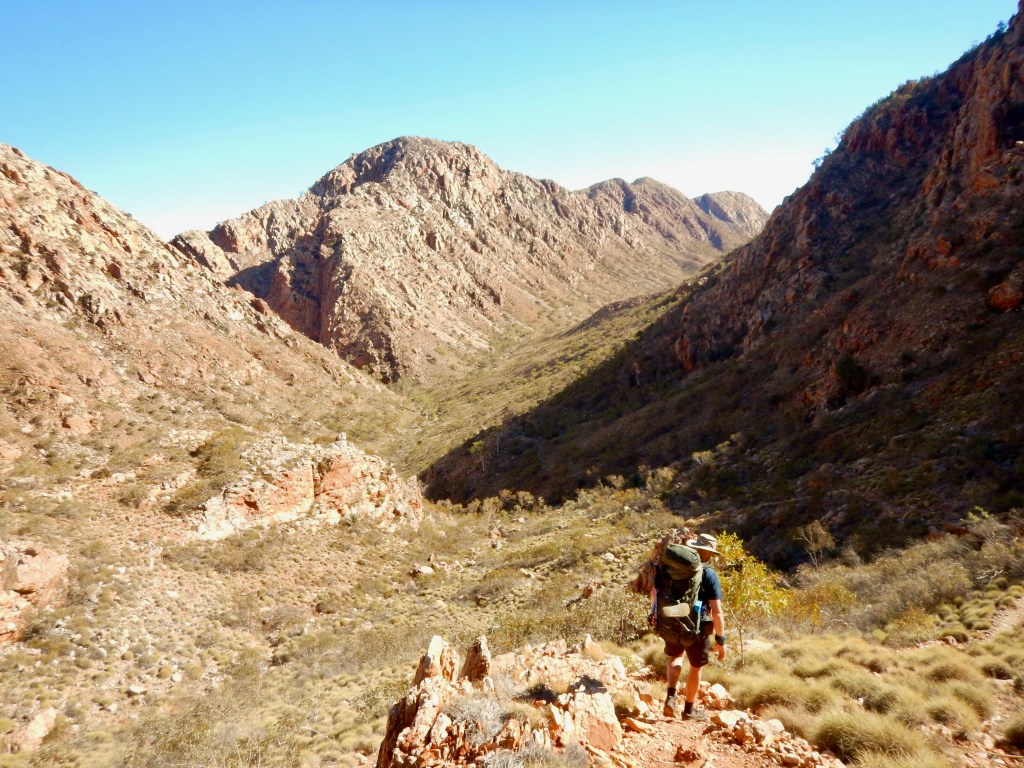 The West MacDonald ranges surprised me. It didn’t have peaks that pierced the sky, or glaciers that hung like white curtains several miles high, or lush green alpine meadows. It was dry, bloody hot and any green on the landscape was a drab olive, thin and sharp – designed to resist an unrelenting sun. But it was still beautiful. And I hadn’t been just a spectator, I’d immersed myself into its landscape, breathed its subtle desert scents that teased on desert breezes. I listened to a myriad of birds sing a welcome every daybreak, the howling passing dingos at night. I hadn’t been just a spectator, I was in the arena. I washed and swam wherever I could in the chilly waters of the gorges hidden in gaps between the mountains. I left skin behind on sharp rocks, gallons of sweat amongst the dusty scrub, and a few footprints that hid bandaged blisters on both feet. Those first few days most definitely should have been shorter. And, I became reacquainted with the heavens, Mars passing close to Earth and bright like a star, the Southern Cross showing me south, and the soft cloudy glow of the Milky Way.