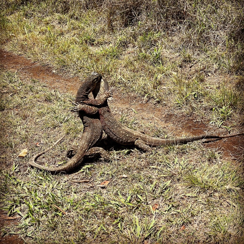 Rolling thunder early on gave way to the lovely chiming calls of bellbirds, the sharp crack of the whip birds and a few raucous chortles from several kookaburras. The highlight, however, was the number of lace monitors we met, including two sizeable chaps having a wrestling match in the middle of our hiking trail.