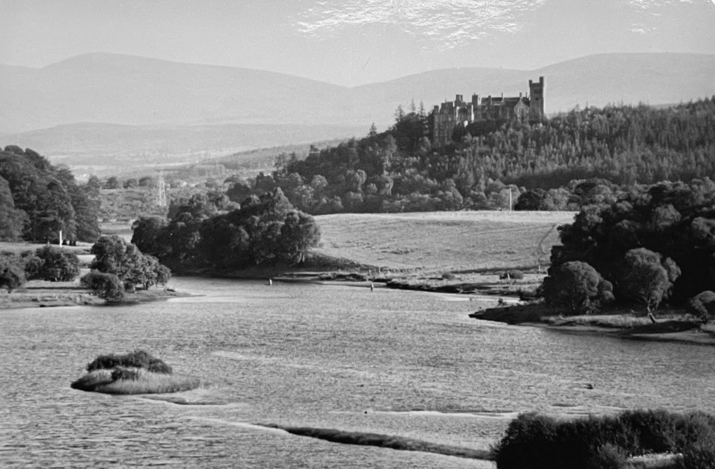 The castle didn’t just sit on the hill above the Kyle of Sutherland, the river than ran beneath it, it commandeered it. It demanded your eye give it more than just a passing glance. The grounds that surrounded it on 3 sides had, on its fourth, a steep cliff that overlooked the road, the river and a railway bridge. The road below skirted respectfully around the cliff base past the lower Castle gates, following the Kyle’s waters upstream from the small village of Culrain up into the heart of the Highlands. A little way upriver is a tributary, the River Shin, where at the right time of year, salmon could be seen leaping up the splendid Falls as they made their annual pilgrimage as far as they could to spawn.