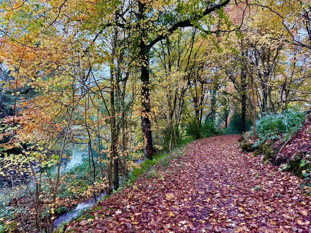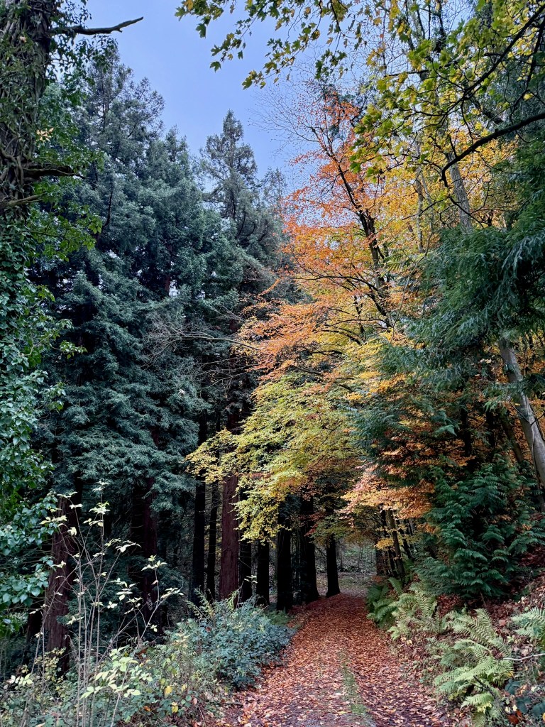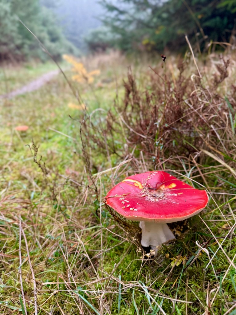 But a prelude to winter in the UK are the coloured gowns of gold, burnt orange and rusty red that grace parks and gardens, forests and woods before sharp winds wipe them clean from the trees. I left behind my leafy suburb of Putney (and quiet walks across Wimbledon Common) and headed out to the Shropshire Hills for a writing course. My home for the week was “The Hurst”, built around the 1830s and once home to English playwright John Osborne. Located within the Clun Valley, it overlooks farms and pastures, and is surrounded by forest. It’s a beautiful location, and even days of damp skies couldn’t muffle the colours that decorate the many forest trails. Even the mushrooms shouted in bright reds.